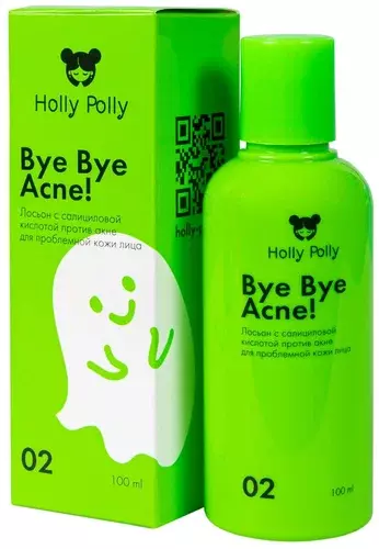 Нанесите лосьон на ватный диск, протрите лицо, предварительно очистив кожу пенкой для умывания лица Holly Polly Bye Bye Acne! против акне и воспалений.